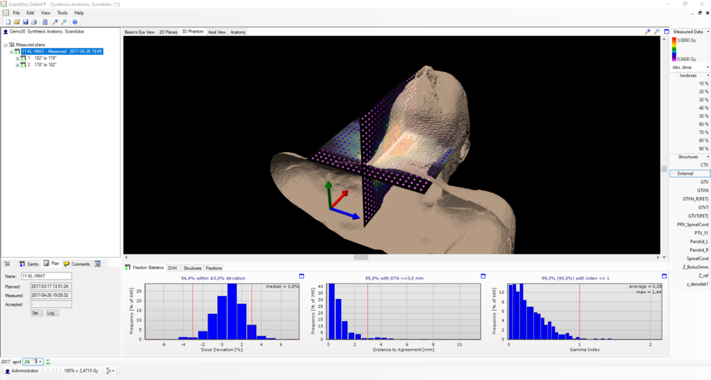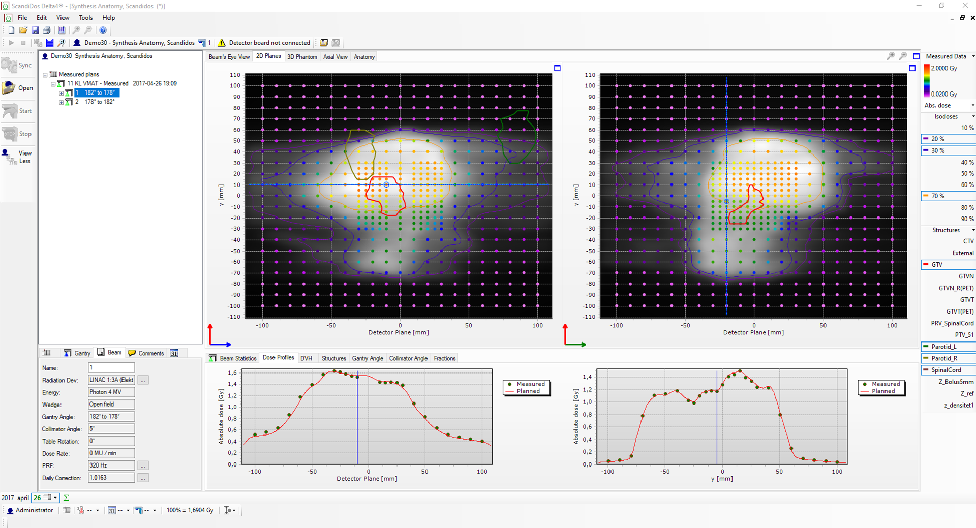 Unlike single-plane systems, Delta4 Phantom+ measures 4D dose distribution in the isocentric region, providing comprehensive 4D insights for confident verification of even the most complex IMRT plans.