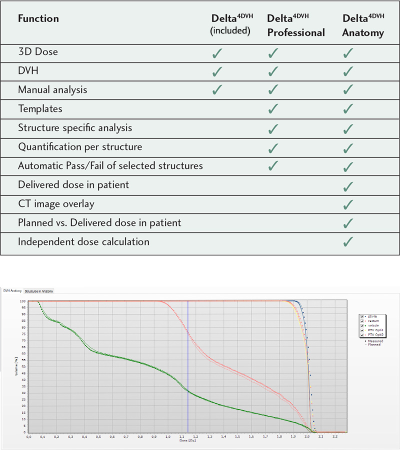 With the Delta4DVH Anatomy software option, you can verify and analyze the dose that has been delivered to the patient anatomy. Based on the measurements in the isocentric target region and dose calculation of the dose in the patient anatomy you now have a truly independent verification of the delivered dose.