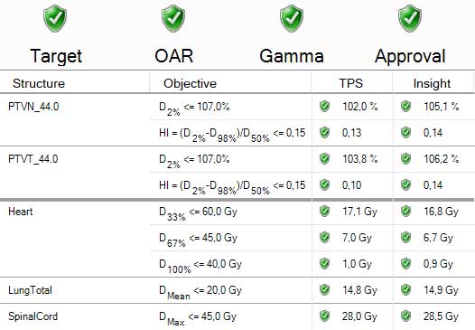 Extremely intuitive, a single export to Delta4 Insight from the TPS triggers an automatic 3D dose calculation and plan evaluation, generating a pass/fail indication for each OAR and target objective. This allows you to verify the accuracy and quality of your plans, without adding to your clinic’s workload.