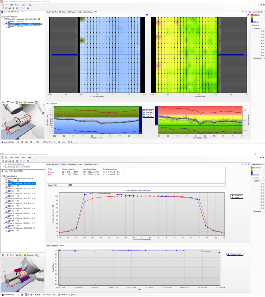 The Delta4 MachineQA software option for fast data acquisition and advanced data analysis allows you to perform QA of your linac, specifically in relation to rotation, start-up behavior, and dynamic beam modulation.